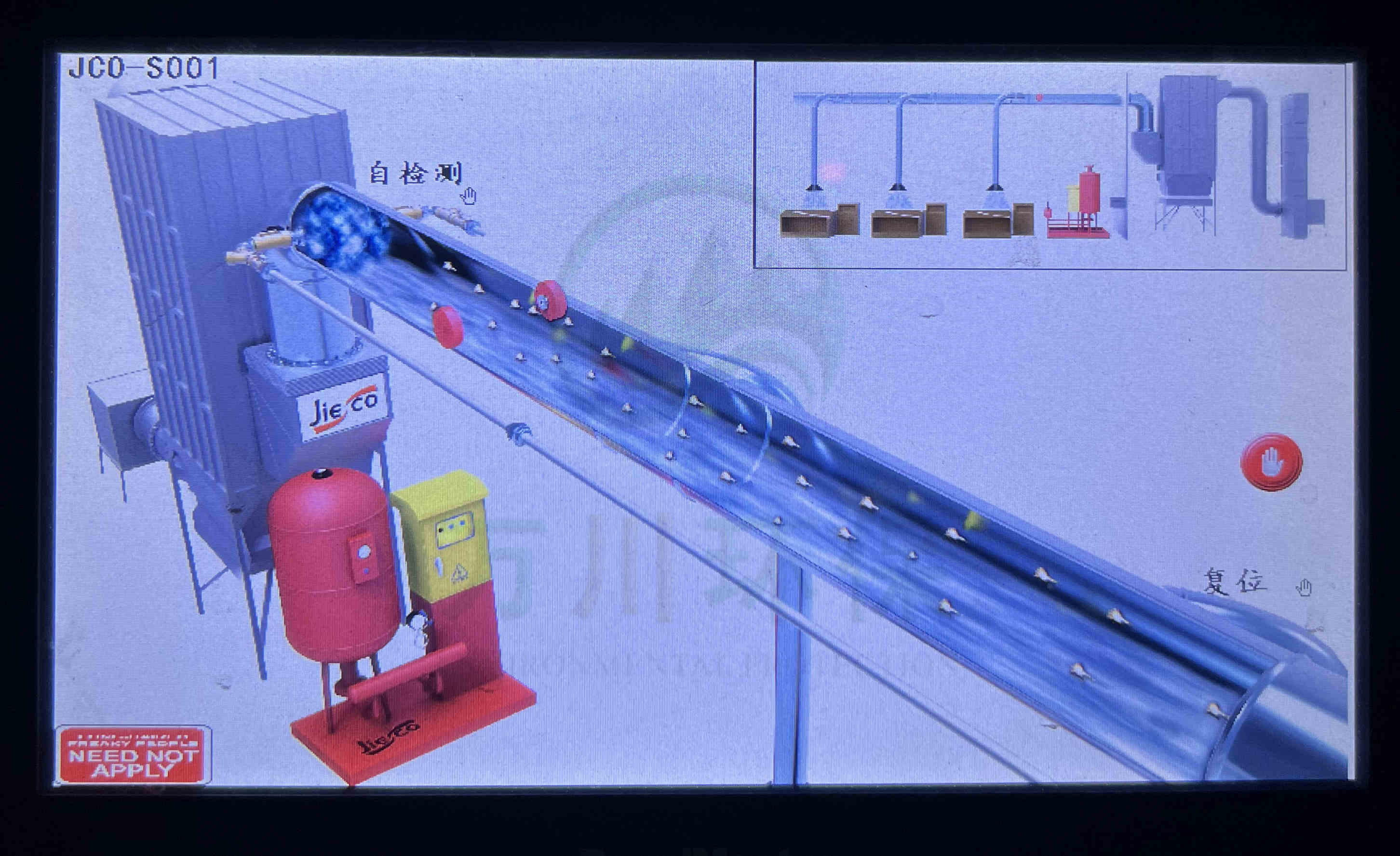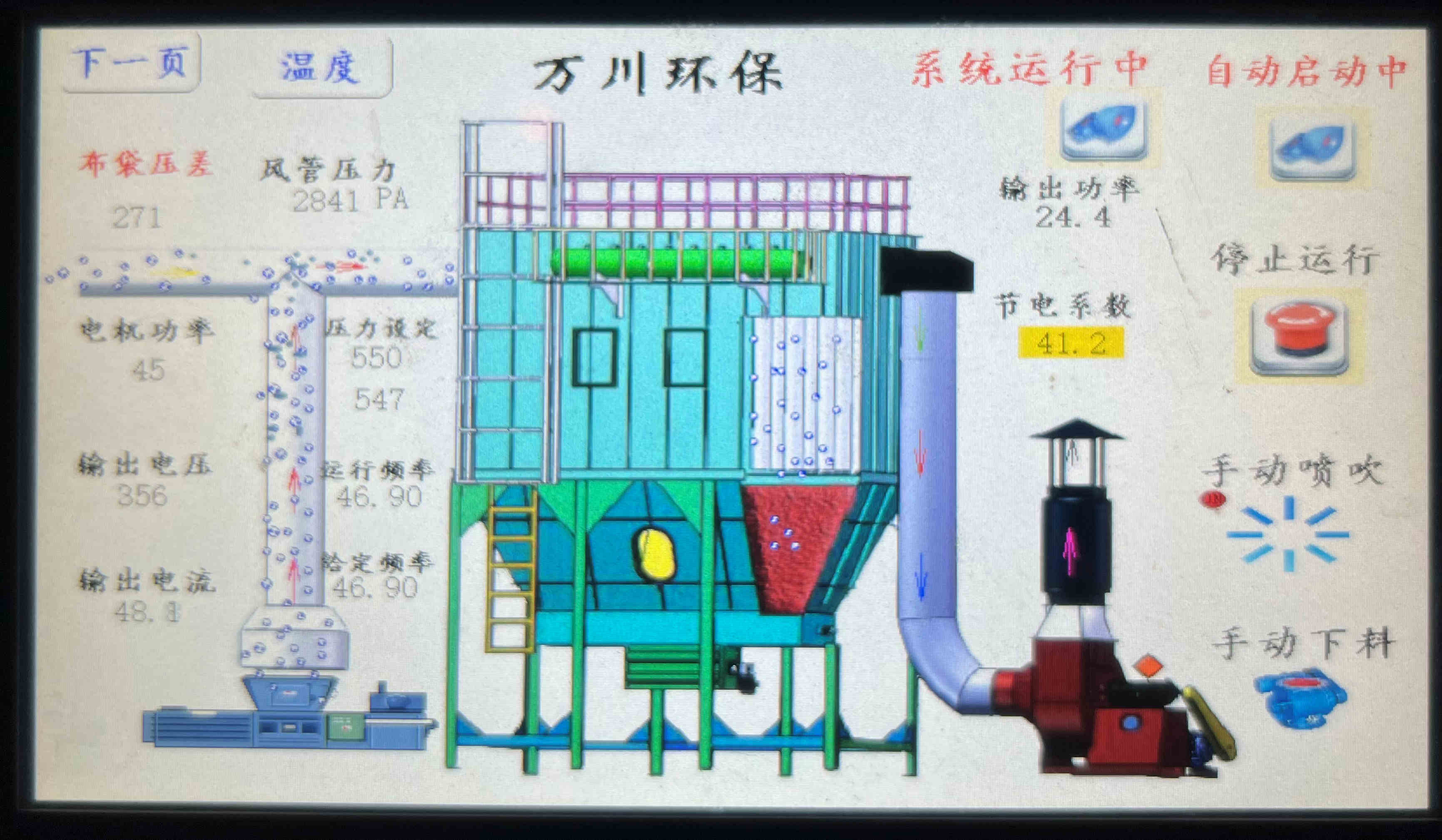 (萬川環(huán)保布袋除塵器配套電控系統(tǒng) 一鍵啟停操作方便快捷,簡單穩(wěn)定) (萬川布袋除塵器配套消防噴淋管路,為安全運行保駕護航)