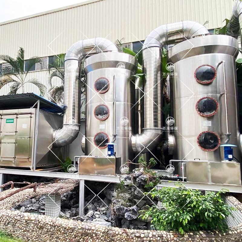 根據(jù)客戶需求和我司實地考察之后,最終采用‘兩級噴淋吸收法+活性炭吸附法’對其進行處理。采用水噴淋一方面可以降溫,另一位方面能夠讓水吸一部分的有機廢氣,降低后續(xù)活性炭吸附的負荷。