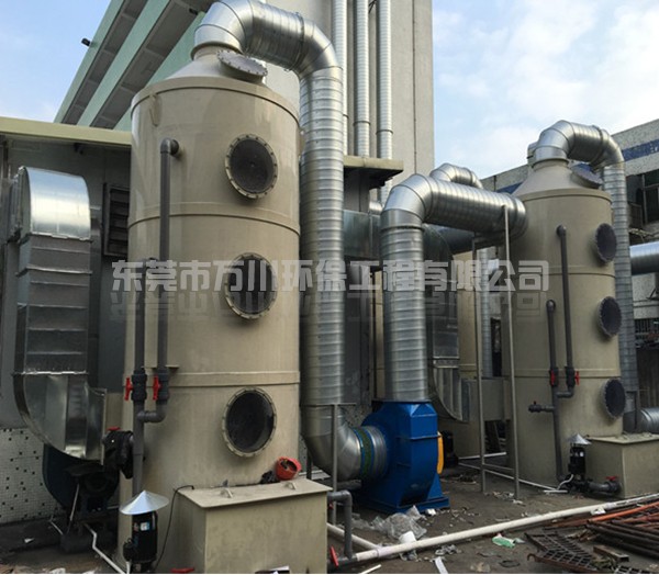 該公司專業(yè)研發(fā)及制造汽車外飾零部件,在角磨機(jī)打磨工序中,會產(chǎn)生粉塵,該粉塵屬于鐵屑的金屬粉塵、打磨的過程中伴隨火花、比重大、親水性好。鐵屑粉塵具有易氧化的特點,氧化反應(yīng)會產(chǎn)生熱量,達(dá)到一定濃度時會發(fā)生爆炸,使用噴淋塔是最適合不過了,所以根據(jù)項目粉塵的物理性質(zhì)、安全方面考慮,使用噴淋塔除塵器,進(jìn)行處理,每個工作位配套打磨臺。