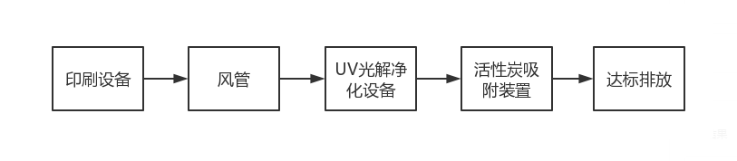 生產(chǎn)過程中產(chǎn)生的印刷廢氣通過風(fēng)機的作用下進入風(fēng)管,首先廢氣會進入UV光解凈化設(shè)備,然后印刷廢氣會進入活性炭吸附裝置,最后達標排放。