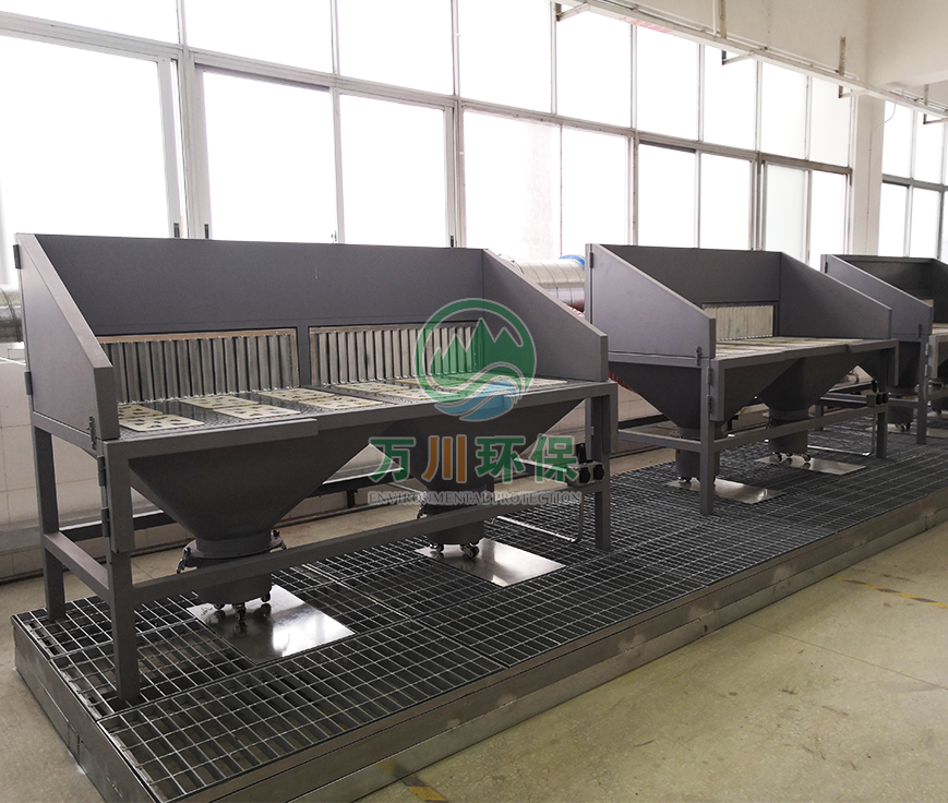 打磨臺是一種集工作臺與打磨、切割粉塵處理裝置為一體的環(huán)保設(shè)備。打磨臺適用于中小型精細(xì)加工、不規(guī)則部件加工工況。打磨臺可有效捕集懸浮的細(xì)小塵埃,給工人提供潔凈健康的工作環(huán)境,并且可搭配濾筒除塵和布袋除塵器一起使用。